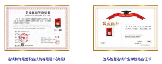 獲得連鎖特許經(jīng)營(yíng)職業(yè)技能等級(jí)證書(shū)(高級(jí))和逸馬智慧連鎖產(chǎn)業(yè)學(xué)院結(jié)業(yè)證書(shū)。這些證書(shū)不僅是對(duì)學(xué)員學(xué)習(xí)成果的認(rèn)可,也將為學(xué)員在職業(yè)發(fā)展中提供有力的支持。