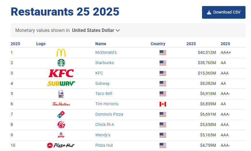 這份榜單不僅是品牌價(jià)值的角力場(chǎng),更折射出全球餐飲產(chǎn)業(yè)在2025年的關(guān)鍵變局。