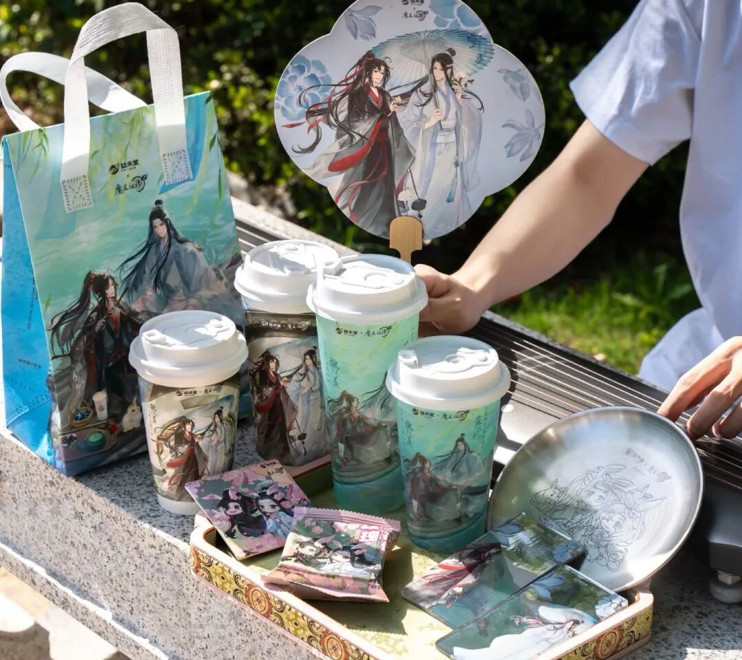 益禾堂在IP聯(lián)名上也體現(xiàn)了價(jià)值共創(chuàng)策略。今年與《魔道祖師》《狐妖小紅娘》《保衛(wèi)蘿卜》等IP合作,通過(guò)深挖IP內(nèi)核而非簡(jiǎn)單堆砌元素,將產(chǎn)品轉(zhuǎn)化為文化符號(hào)。聯(lián)名周邊如亞克力鏡子、雙人杯墊和不銹鋼盤(pán)兼具趣味性與實(shí)用性,激發(fā)消費(fèi)者二次創(chuàng)作和社交傳播,形成情感綁定與用戶(hù)留存。