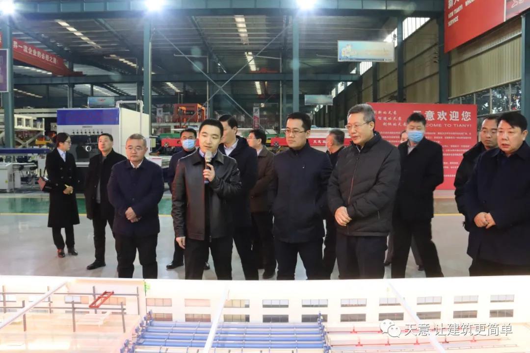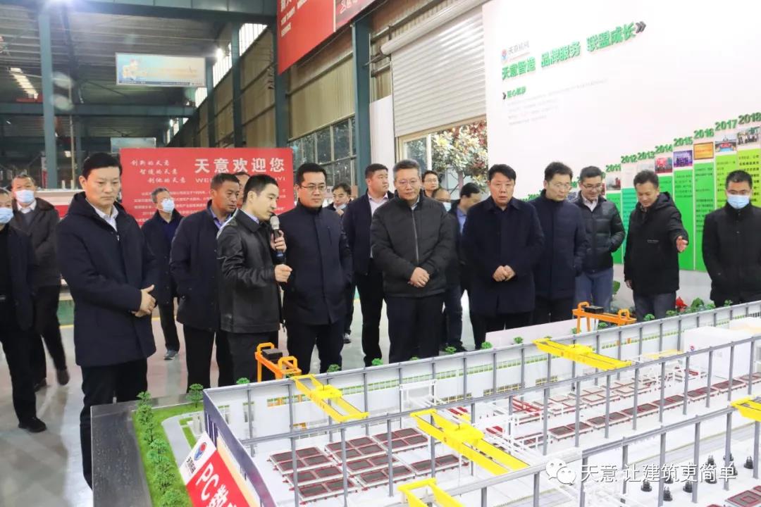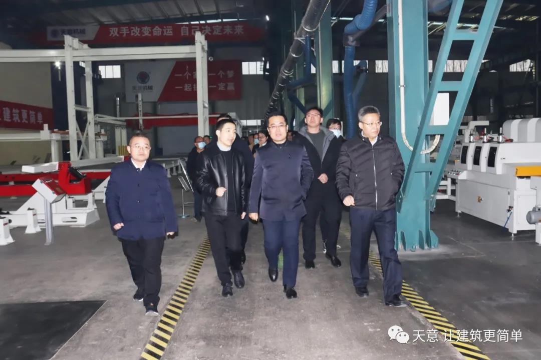 12月19日下午,嘉祥縣委副書記江峰一行蒞臨天意機械考察全市新舊動能轉(zhuǎn)換現(xiàn)場觀摩項目——裝配式建筑自動化PC生產(chǎn)線項目。兗州區(qū)區(qū)委副書記寇寧,發(fā)展和改革局副局長劉守全,天意機械總經(jīng)理劉海龍等領(lǐng)導陪同考察。