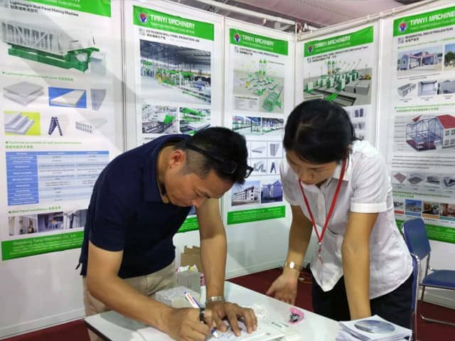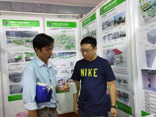 越南是亞洲經(jīng)濟(jì)發(fā)展速度的國(guó)家之一。近年來(lái),越南正加大對(duì)基礎(chǔ)設(shè)施建設(shè)和主要城市居民住宅的改造力度,綠色建筑建材裝備缺口巨大,為適應(yīng)市場(chǎng)需求,天意機(jī)械攜綠色建材設(shè)備參展了此次展會(huì)。展會(huì)期間,外貿(mào)銷(xiāo)售部李經(jīng)理,認(rèn)真對(duì)待每位來(lái)訪的客戶(hù),詳細(xì)向其介紹天意機(jī)械專(zhuān)利產(chǎn)品輕質(zhì)墻板生產(chǎn)線,復(fù)合墻板生產(chǎn)線,保溫裝飾一體化板生產(chǎn)線等產(chǎn)品的優(yōu)勢(shì),以及設(shè)備在東南亞地區(qū)建筑建材市場(chǎng)的影響,展會(huì)現(xiàn)場(chǎng)就有多數(shù)客戶(hù),初步簽訂了輕質(zhì)墻板生產(chǎn)線、復(fù)合墻板生產(chǎn)線加工生產(chǎn)訂單。