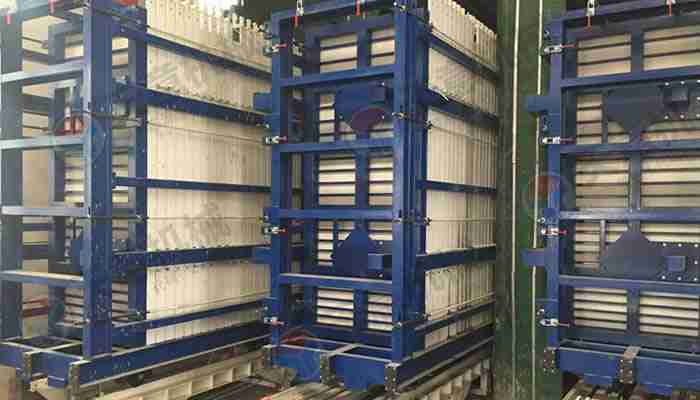 該復(fù)合墻板生產(chǎn)線立式旋轉(zhuǎn)臥式出板復(fù)合墻板成型機,一次可生產(chǎn)四十塊墻板,該生產(chǎn)線主要分為:配料攪拌系統(tǒng)、墻板成型系統(tǒng)、液壓整體開模系統(tǒng)、液壓翻轉(zhuǎn)系統(tǒng)、整體出板翻轉(zhuǎn)碼垛系統(tǒng)、成型機自動循環(huán)系統(tǒng)、變頻擺渡系統(tǒng)、數(shù)控配電系統(tǒng)等部件 組成。該生產(chǎn)線自動化程度高,液壓開合模,解決了傳統(tǒng)立式復(fù)合墻板機人工開合安全隱患,提高了工作效率。設(shè)備配有整體出板碼垛系統(tǒng),解決了傳統(tǒng)人工出板方式,減少產(chǎn)品的破損率,提高了產(chǎn)能。生產(chǎn)線使用密封式泵送系統(tǒng)配備雙工位注漿槍,注漿速度快密實度高,材料粘結(jié)更緊密。