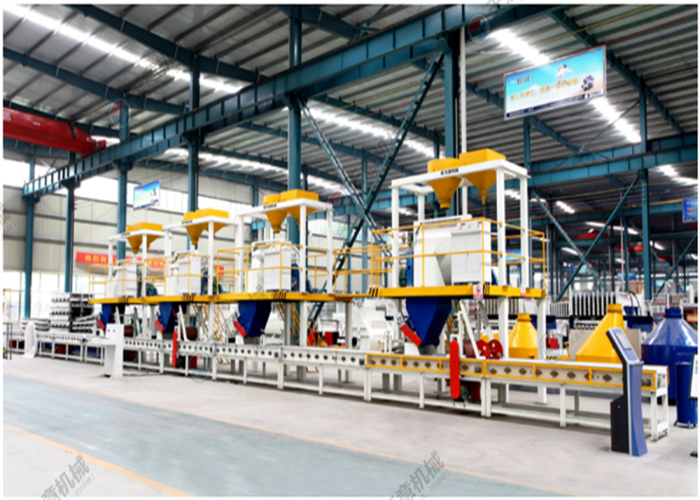 該生產(chǎn)線可生產(chǎn)各種產(chǎn)品,如FSB建筑保溫免拆模板、EPC建筑保溫免拆模板、夾心保溫墻板等,生產(chǎn)線自動化程度高,采用PLC控制系統(tǒng)保證了生產(chǎn)線的穩(wěn)定性,節(jié)省人工,生產(chǎn)效率高,設備配有計量系統(tǒng),結合產(chǎn)品的材料性能使料漿攪拌均勻,能夠很好的將產(chǎn)品復合在一起,從而提高了產(chǎn)品的質量。
